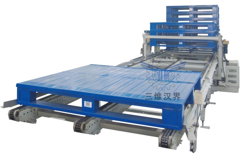 自動供托機構(gòu)是全自動噸袋包裝機系統(tǒng)中至關(guān)重要的一環(huán),它實現(xiàn)了托盤供給、定位、輸送的完全自動化,是連接包裝環(huán)節(jié)和倉儲物流環(huán)節(jié)的“橋梁”,直接決定了整個包裝線的效率和無人化程度。在這里小編以三維漢界機器生產(chǎn)全自動噸袋包裝機系統(tǒng)為例,對自動供托機構(gòu)進行簡單介紹。當然了,如果有不恰當?shù)牡胤骄凑埮u指正。