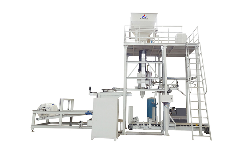 空袋放置架、空袋供給輸送機、自動上袋裝置、上袋移動滑臺、稱重物料倉、給料裝置、給料裝置滑臺、袋口熱合封口裝置、噸包提升整理裝置、承重機架、檢修平臺、噸包物料輥道輸送機、除塵管及全套電氣控制系統(tǒng)、扶梯及欄桿等。