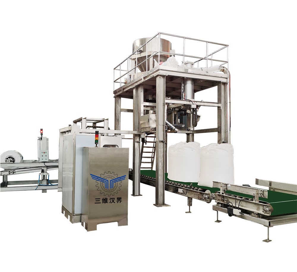 全自動噸袋包裝機,也叫全自動大袋包裝機、全自動噸袋包裝秤、全自動大袋包裝秤,是一種全自動噸袋包裝設備,全自動噸袋包裝機克服了噸袋包裝機(噸袋包裝秤、大袋包裝機、大袋包裝秤)需要人工上袋(掛袋)的缺點,實現(xiàn)了噸袋的自動上袋、物料自動稱量、自動灌袋、自動輸送、自動熱合封口、自動噴碼打印相關生產信息;全自動噸袋包裝機可以應用在需要大袋包裝的任何生產線,可以完美替代半自動人工上袋噸袋包裝機,顆粒物料和粉體物料皆可以使用全自動噸袋包裝機實現(xiàn)物料的自動包裝盒輸送。隨著人工費用的增加,全自動噸袋包裝機的使用推廣范圍越來越大。